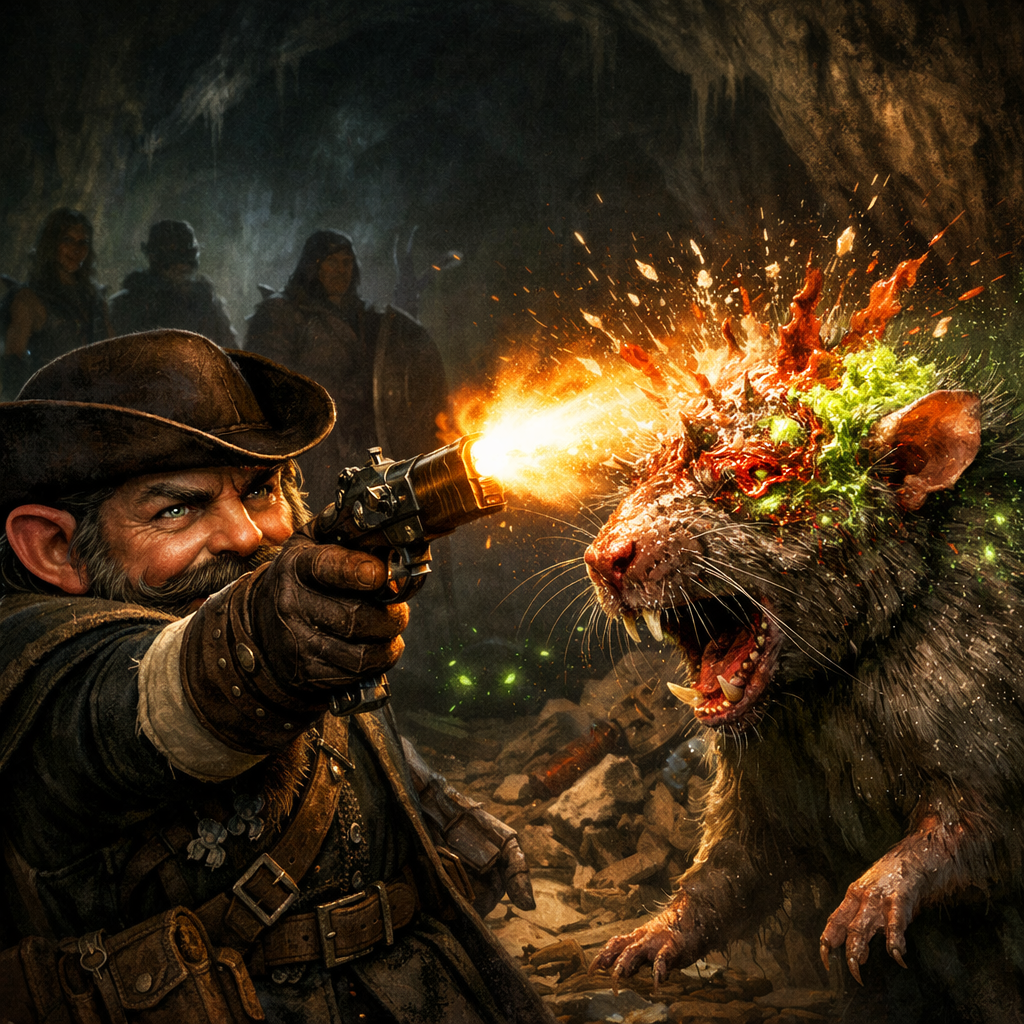 Seeking a hidden path into Castle Wittgenstein, the companions win the trust of Wittgendorf’s forest exiles and descend into the tainted caves below, where unseen horrors, unnatural growths, and a nest of monstrous, warp-glowing rats herald the corruption festering beneath the fortress.